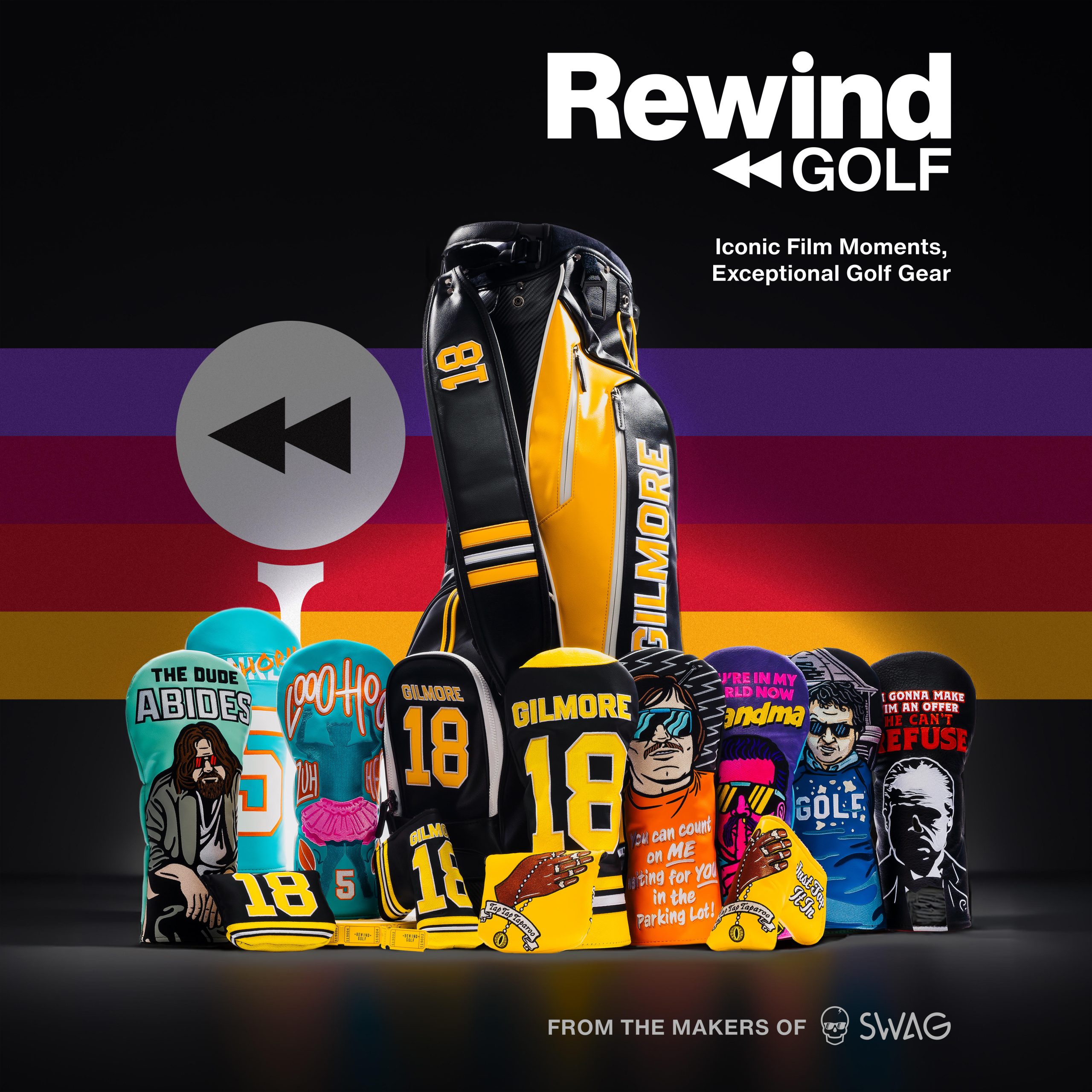 Rewind Golf’s first collection includes Happy Gilmore, The Godfather, Animal House, Ace Ventura: Pet Detective, and The Big Lebowski with more great options coming in 2025.