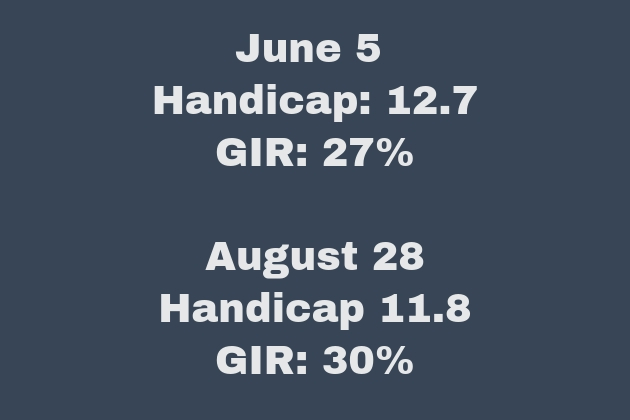 Finally, you need patience.  Especially as you get better, improvement comes slowly and is hard to see.  A swing change may improve your driving by 10%, but if you’re shooting in the 70s, that’s not going to translate to radically lower scores.  It may not even translate to huge distance gains or a jump in fairways hit.  However, if you track your data for a month or a season, you may see that you’re taking fewer penalties, hitting fewer shots OB, hitting more GIRs, and that will let you know you’re on the right track.