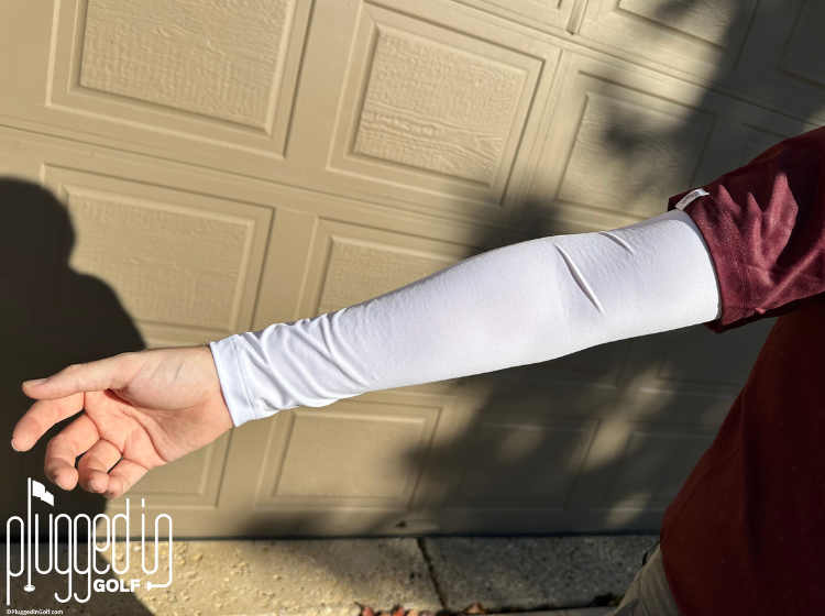They also offer performance sleeves. For a more traditional kind of apparel company, it was nice to see they had this option. They mean what they say, that they are a golf apparel company for golfers. The sleeves fit well, felt smooth and stretchy, and didn’t constrict my swing at all. They come in S/M (pictured above), L/XL, and XXL sizes and only in white. They did their job well, as I never got any sunburn while wearing them but didn’t feel overheated either.