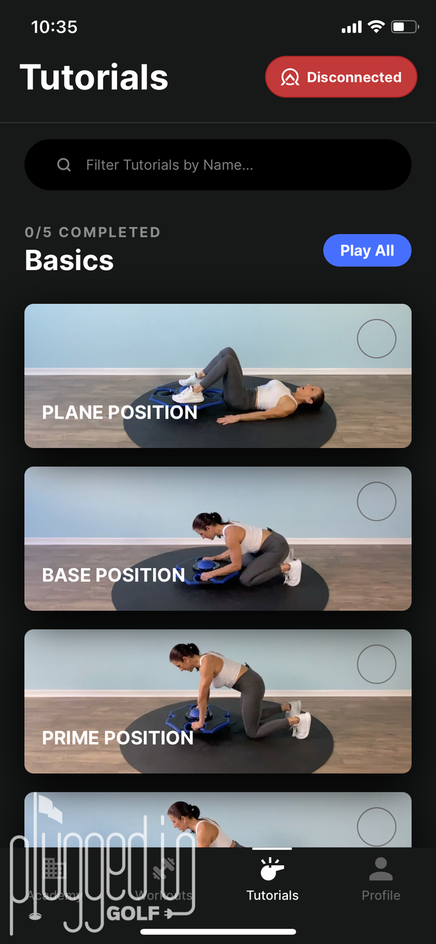 Much like Peloton, AXIUS Core has a hardware component and a training component.  On the training side, you’ll start by downloading the AXIUS app to your iOS device and scheduling your assessment.  The assessment is a one hour, one-on-one session with a TPI Level 3 Certified coach conducted over Zoom.  You’ll go through a series of movements and answer some questions so that your coach can personalize your workout program.  The assessment alone was extremely beneficial as it identified two areas of weakness and two areas lacking mobility, all of which contribute to problems in my golf swing.