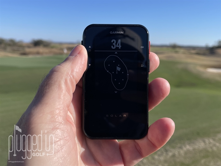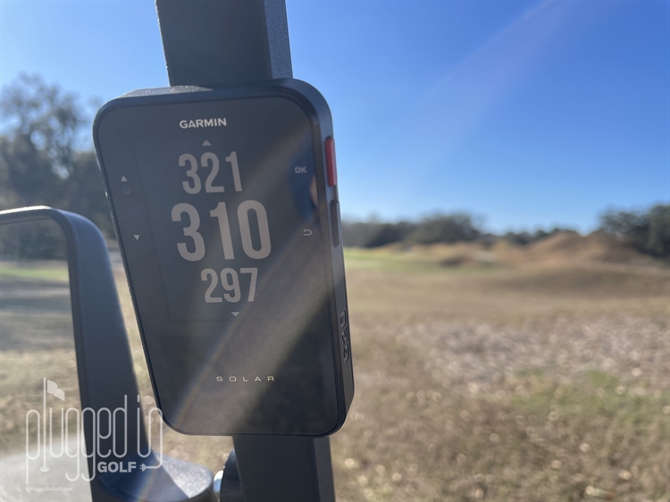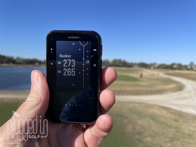 What truly gave me confidence in the Garmin Approach G20 Solar’s data was checking a couple bunkers against my rangefinder. Laser ranging on flat-ish features can be tricky, but shooting the far lip of a bunker is target friendly – and the G20 data was spot on.