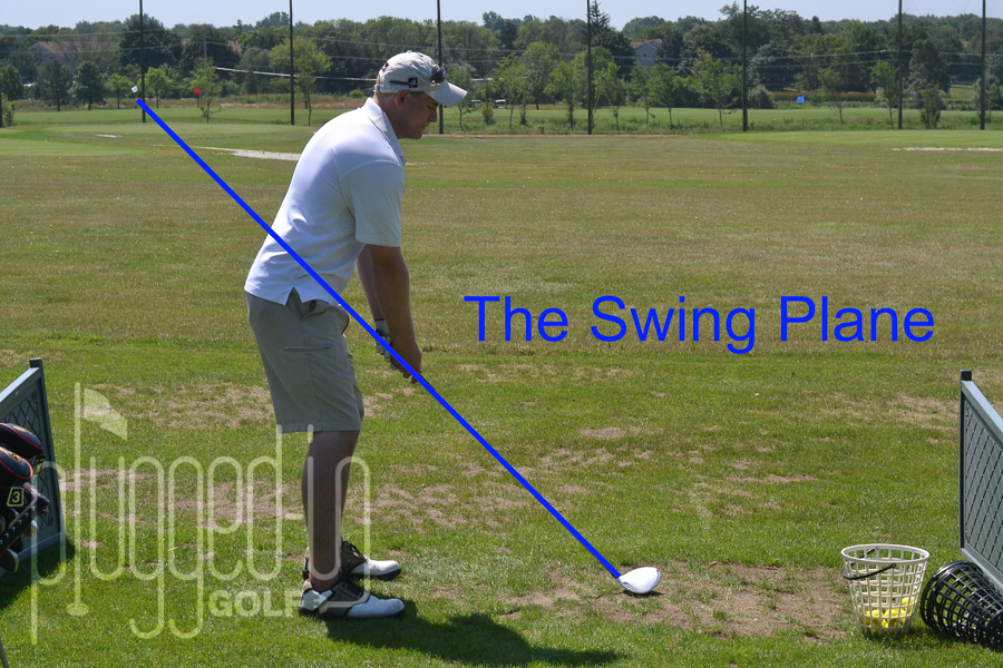 Swing plane is a commonly used term in golf instruction. Variations that you will hear are on plane, off plane. above plane, or below plane. The plane is usually defined by the shaft of the golf club at address.
