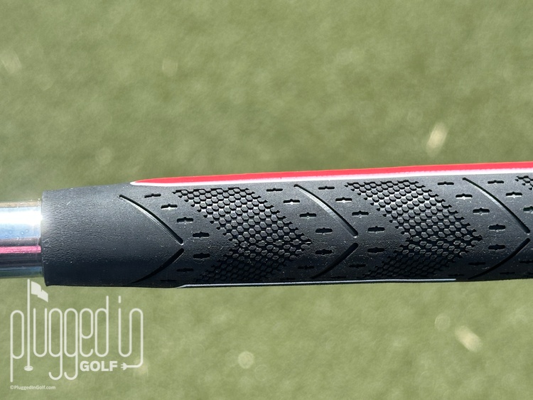 Moving away from the ridge, this is an MCC, one of golf’s most popular grips.  Under the top hand, you get the traction and texture of a corded grip.  The lower hand gets a standard rubber grip with noticeable texture etched into it.