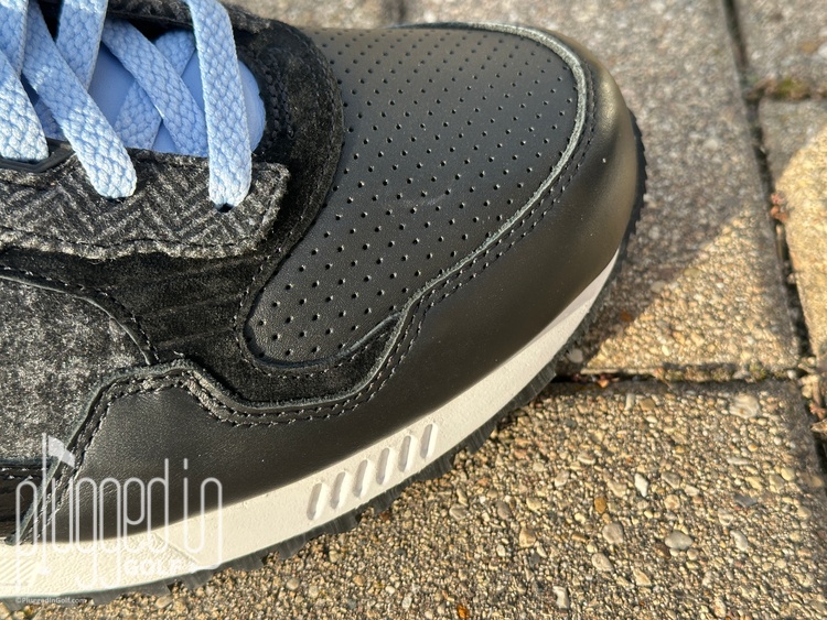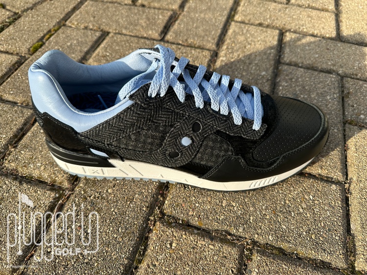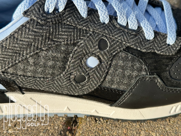 What stands out most about their version of the Shadow 5000 is the use of different textures. The houndstooth print on the upper sets the Greyson X Saucony Shadow 5000 apart from any other golf shoe you can name. Saucony also includes two pairs of laces – blue and black – so you can style the shoes to your taste.