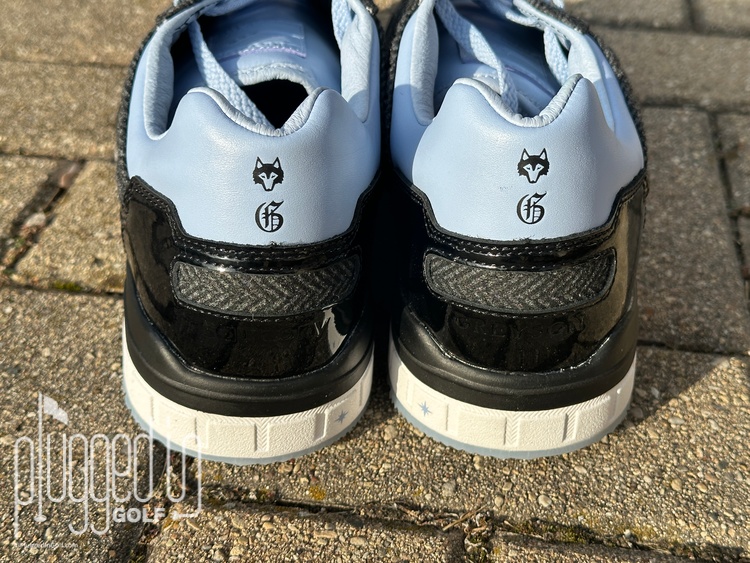 Greyson’s touches are all over this shoe, but in tasteful ways. There are several logos, but they’re small – the wolf and “G” on the upper heel – or tone-on-tone like the “Greyson” on the lower heel. “Wolf” and “Pack” on the soles are nice hidden touches.