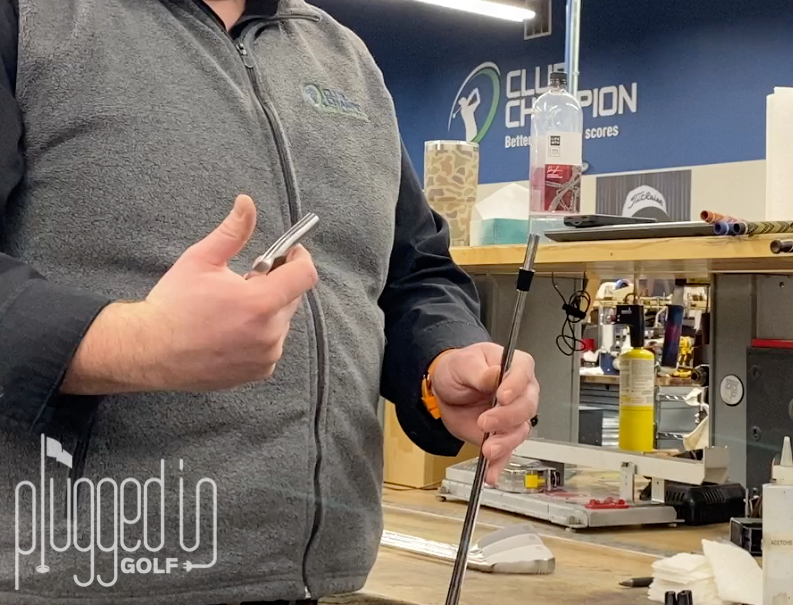 If you’re putting a taper tip shaft into a hosel made for a parallel tipped shaft, you will want to install a shim on the shaft first. A shim essentially enlarges the diameter of the shaft to create a better fit in the hosel.