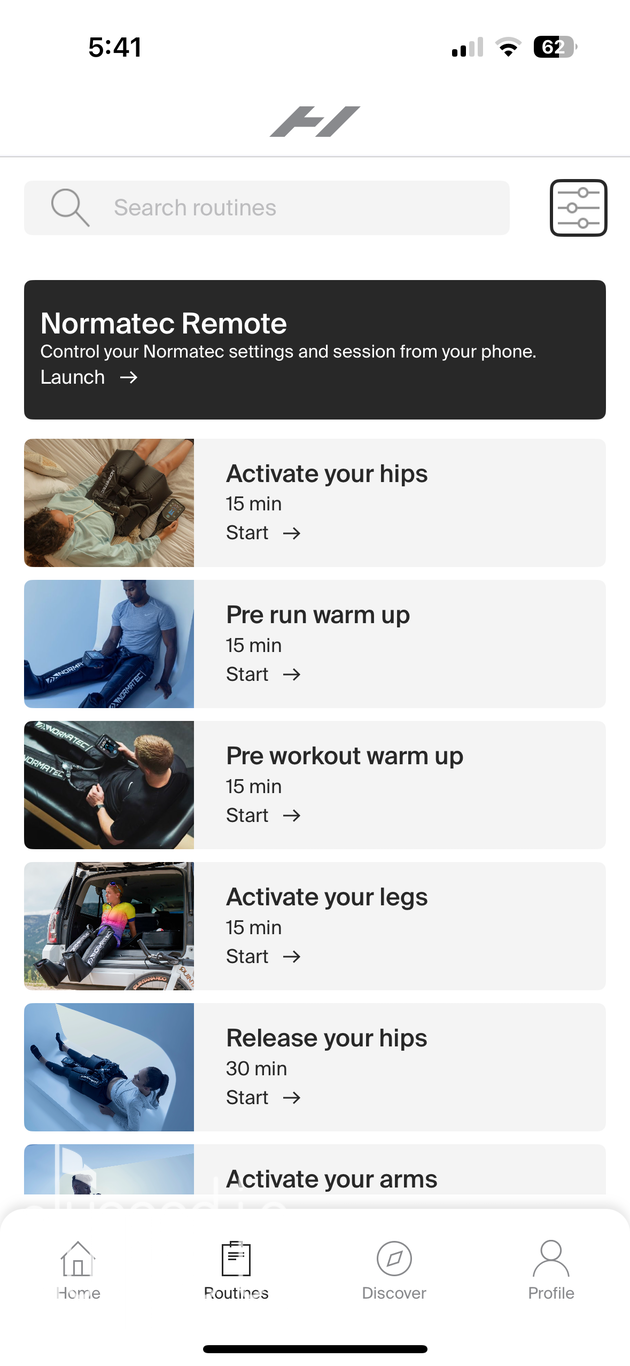 If you want to get the most out of your Normatec 3 Legs, you can download the Hyperice app. The app connects to your control unit via Bluetooth and allows you to access more specialized programs. Setting up a profile in the app and connecting it to your Normatec 3 takes only a couple minutes.