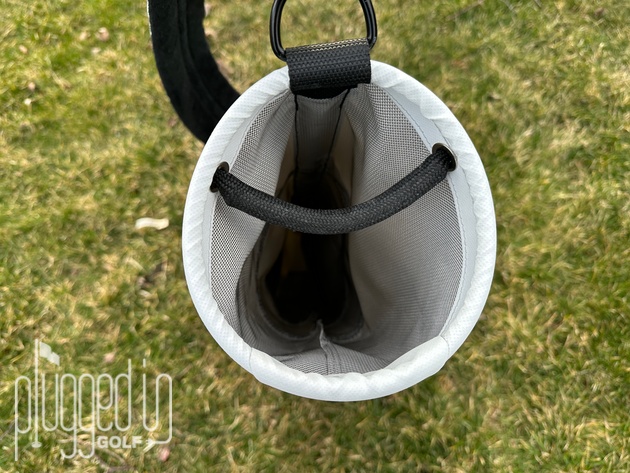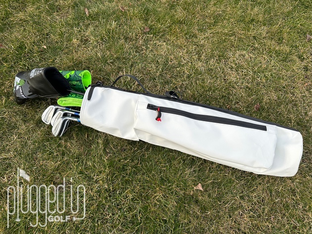 Regarding a max for the half bag (they make a larger one that I did not test), I think ten is about right. I’ve been carrying driver, hybrid, 4I, 6I, 8I, PW, GW, LW, and putter – nine clubs – and everything gets in and out pretty easily, even with midsize grips. I think one more club would be fine, but two more might start to get tangled.