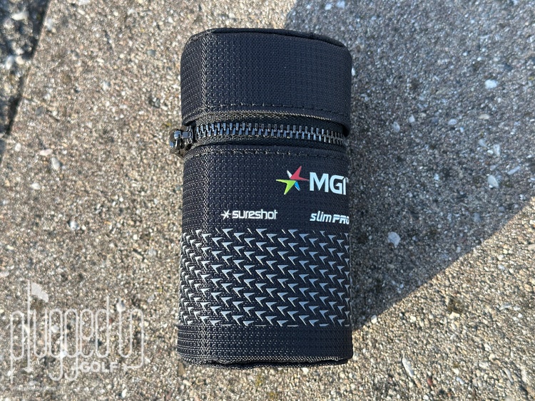 The MGI SureShot SlimPRO rangefinder retails for $299. It comes with the zippered case (above), a charging cable, and a cleaning cloth.