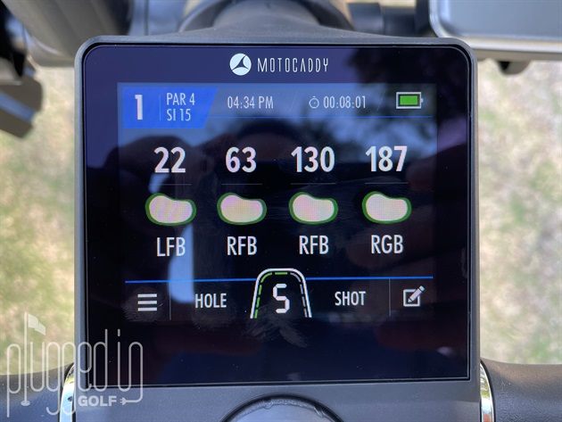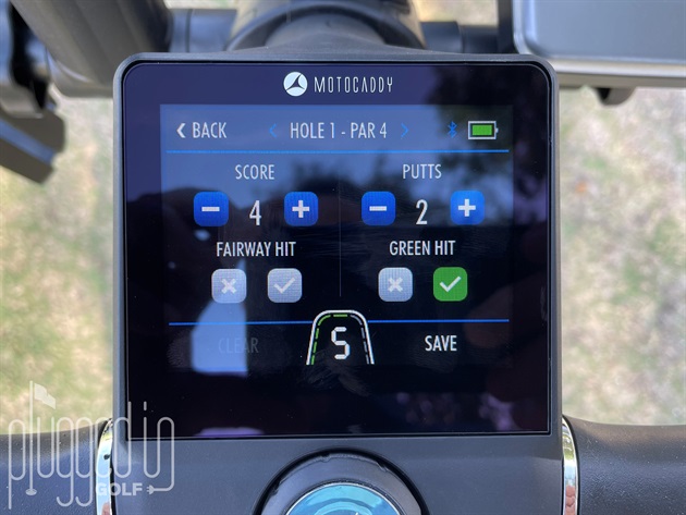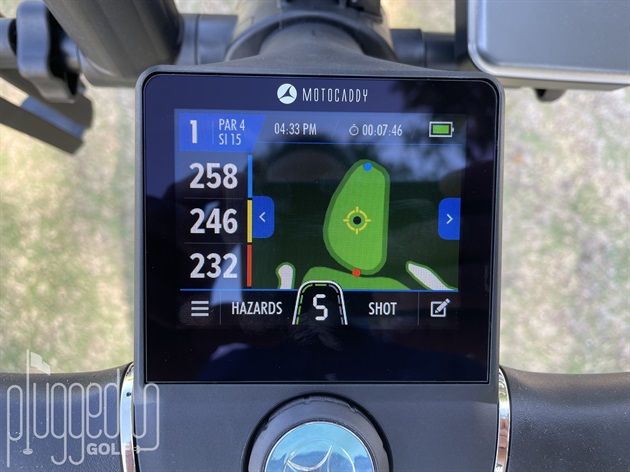 When I engaged the Play Golf mode the first time, the GPS searched for about 2 minutes and then provided an accurate list of the nearest golf courses. Subsequent on/offs found the course more quickly. And just so you don’t look for an on/off button like I did, that function is solely dependent on connecting or disconnecting the battery.