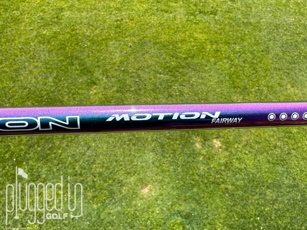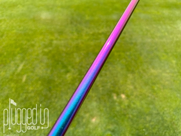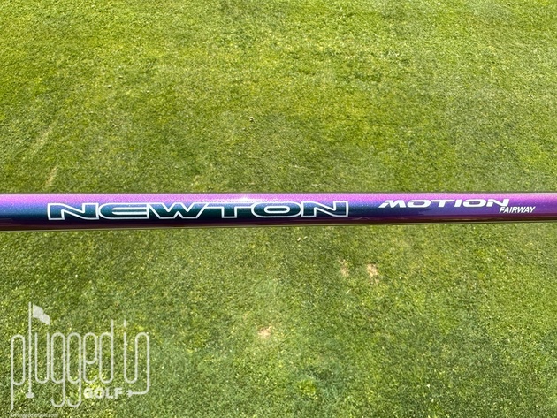 The Newton Motion Fairway Wood shaft is almost identical to the driver version.  What stands out most is the stunning, color-shifting paint job.  A blend of blues, purples, and greens, the exact hues shift with the light.  To me, it’s one of the best looking shafts in recent memory.  I like even it more for its subdued tones which don’t scream for attention or cause distractions at address.