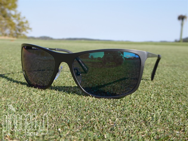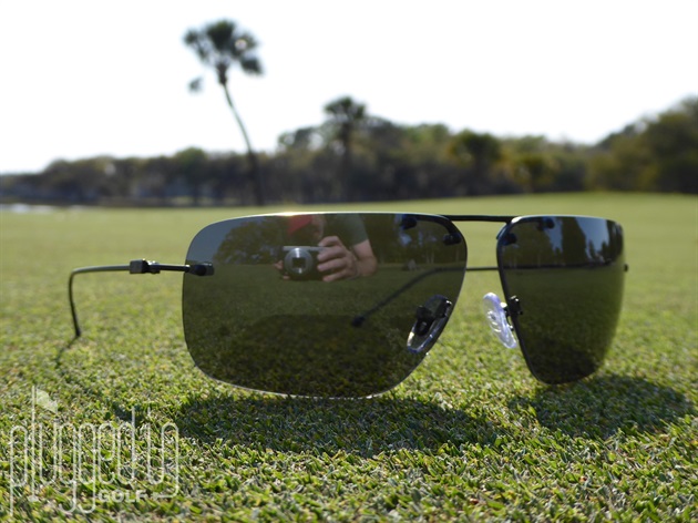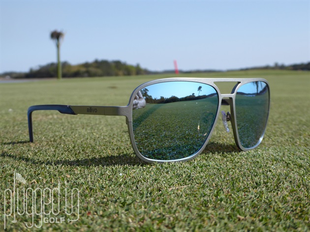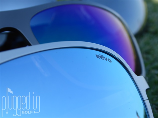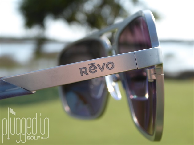 And like the lenses, the frames of the Revo Black collection are special, utilizing advanced materials and construction techniques to create distinctive designs.  Take the Meridian above.  It features a curved frame front that’s punched out of a single sheet of titanium, eliminating the need for welds.  With temples also made out of titanium, the Meridian sunglasses are remarkably lightweight.  The fit was snug without feeling tight, and worked with the elastomeric nose pads to keep the sunglasses in place wonderfully throughout my golf swing – even in sweaty conditions.  Although similarly constructed, the slightly larger Horizon frames didn’t stay in place quite as well for me as the Meridian.