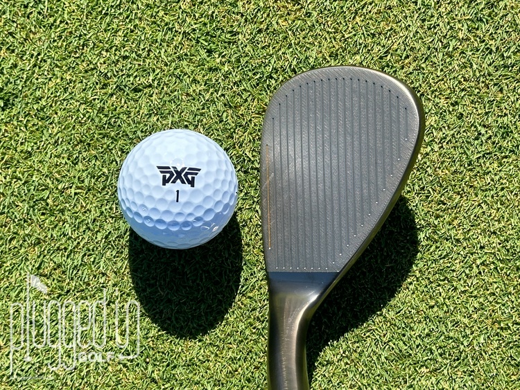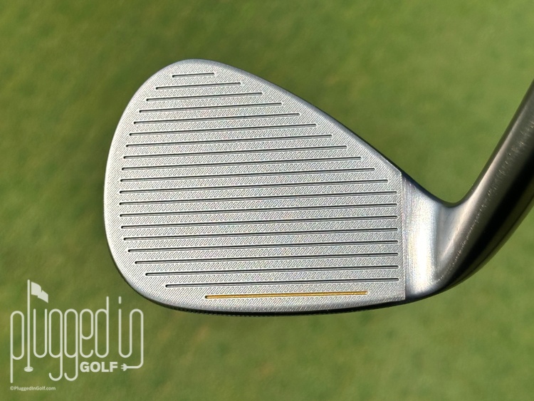 At address, the namesake feature is what stands out most. There is a lot of hitting area, which should embolden players to take on exciting short game shots. That entire surface is covered in grooves in lofts 54 degrees and higher. Across the lofts, the shaping of the face changes noticeably. The 60 degree has the most rounded face and the tallest heel, making it look the largest. The 56 degree has a straighter leader edge, though it’s still gently rounded.