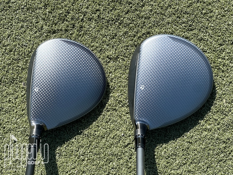Comparing the Qi35 fairway wood to the Qi35 Max (above, right), the core Qi35 is a bit smaller from front to back and heel to toe. The Qi35 also has a slightly taller face. What stands out more than the dimensional differences is the contrast in shape. Where the Qi35 has a slimmer look, the footprint of the Qi35 Max is sprawling, fuller in heel and toe.