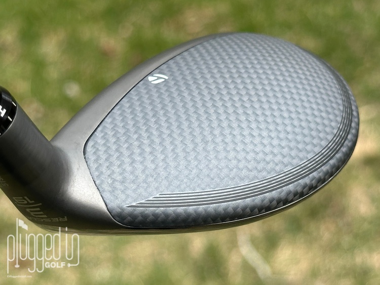 The TaylorMade Qi35 Rescue has the same chromium carbon fiber crown as the rest of the Qi35 family. This is the sharpest departure from the Qi10 Rescue [review HERE], though the Qi35 Rescue does still have the solid block of dark grey at the leading edge. Against the chromium carbon fiber, the “T” alignment aid stands out less but still provides a helpful reminder. By its measurements, the Qi35 Rescue fits comfortably in the game improvement category, and the shape is balanced if not symmetrical. It’s the same 106cc at every loft that’s offered.