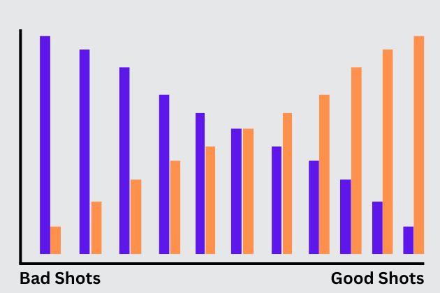 As we move toward scratch or Tour players, the high quality shots become better and the bad shots become less likely.  What’s important to understand, however, is that the chance of a bad shot is never zero.  Players on the PGA Tour can hit shanks or miss three-footers.