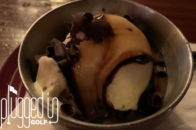 First-class golf is fantastic, but first-class dining to go along with it was a surprise. When staying at the Couer d’Alene Resort and Casino, there are several different restaurants on the property, but the crown jewel is the Chinook Restaurant. Authored by chef Adam Hegsted, the restaurant uses its wood-fired oven and grill to impart a wonderful smokey flavor throughout the menu. Smoke is the show-stopper in the signature dessert too, as your waiter utilizes liquid nitrogen to create ice cream (pictured above) with all kinds of toppings and flavors in seconds.