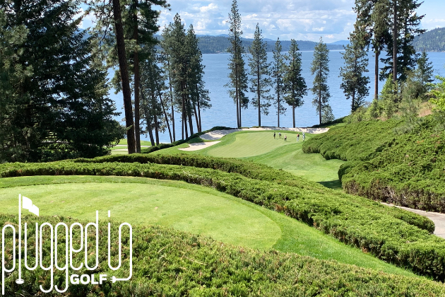 Coeur d’Alene is positively breathtaking. Words and photos don’t do this course justice. It’s a place that had my neck craning back and forth like a manic bird. I couldn’t contain myself. I was laughing, grinning ear to ear, looking all around at the hilltops, trees, vistas, the lake… and of course, the iconic signature island green on it. At every tee, I would excitedly jog up wondering what the next hole would behold.