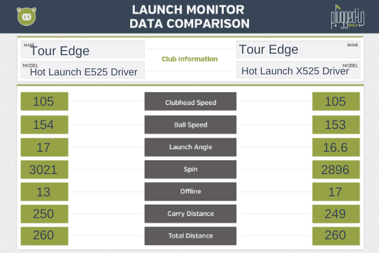For me, both of these drivers launched the ball very high with high spin. In fairness to the heads, the stock shaft is softer than what I normally use, so my numbers are likely somewhat “inflated.” Also, I tested both these heads at 10.5 degrees of loft, not my usual 9. All that said, I didn’t find the X525 driver to be higher launching than the E525 which can likely be explained by the draw bias.